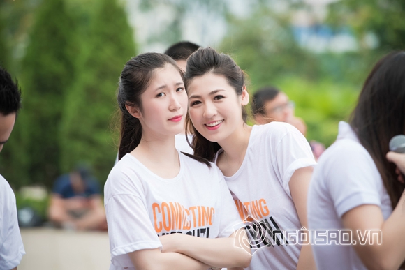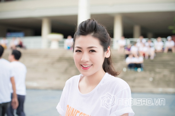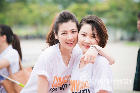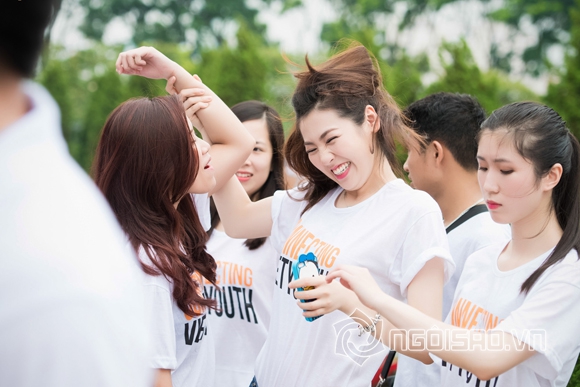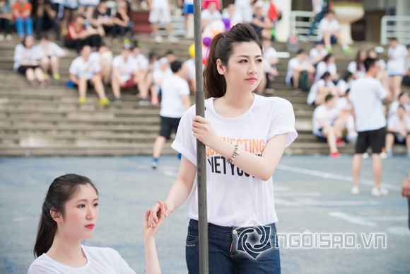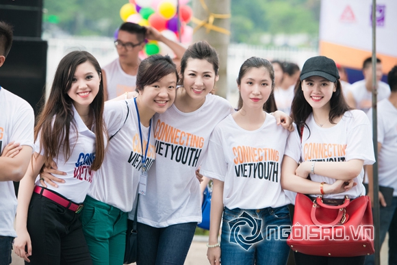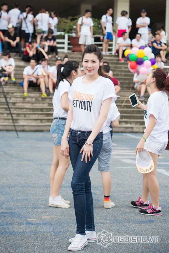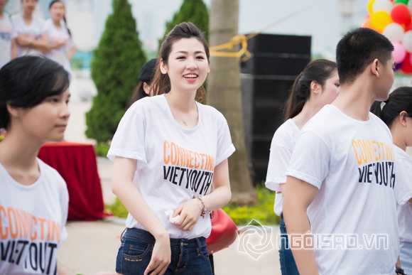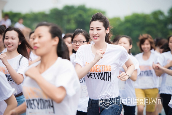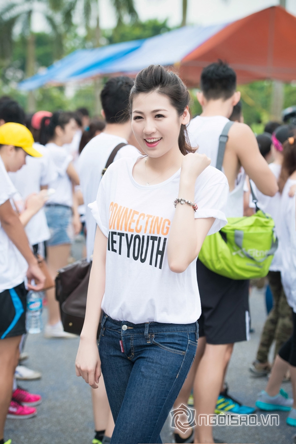 (Ngoisao.vn) - Á hậu 1 Hoa hậu Việt Nam 2012 tươi tắn, xinh đẹp tham gia cuộc thi chạy Kết nối tuổi trẻ Việt diễn ra tại Hà Nội vào ngày hôm qua (24/8).